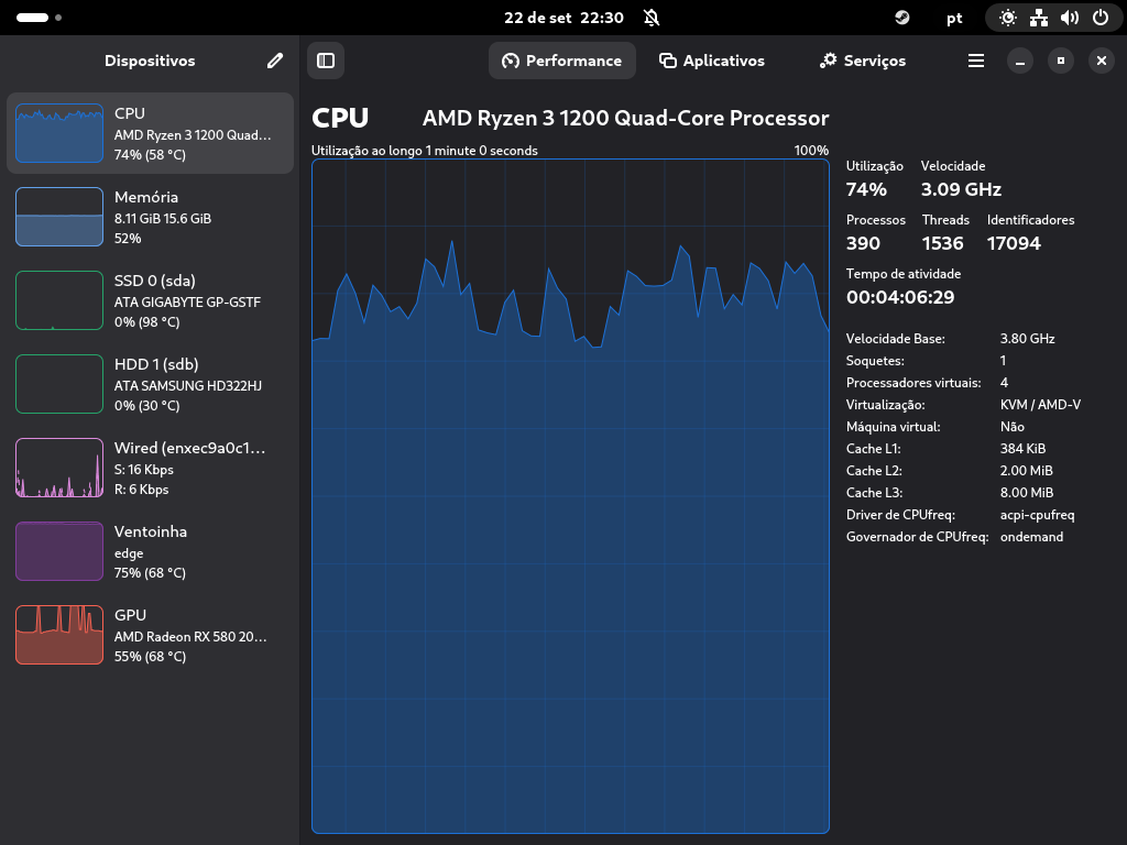 Fiz um overclock de 3,09 GHZ para 3,80 GHZ não parece muito mas nesse processador faz uma baita diferença