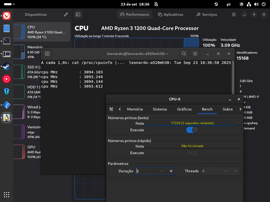 No Windows o processador trabalhava no clock overclockado, Mas no Debian(meu sistema principal) o processador continua no clock antigo.