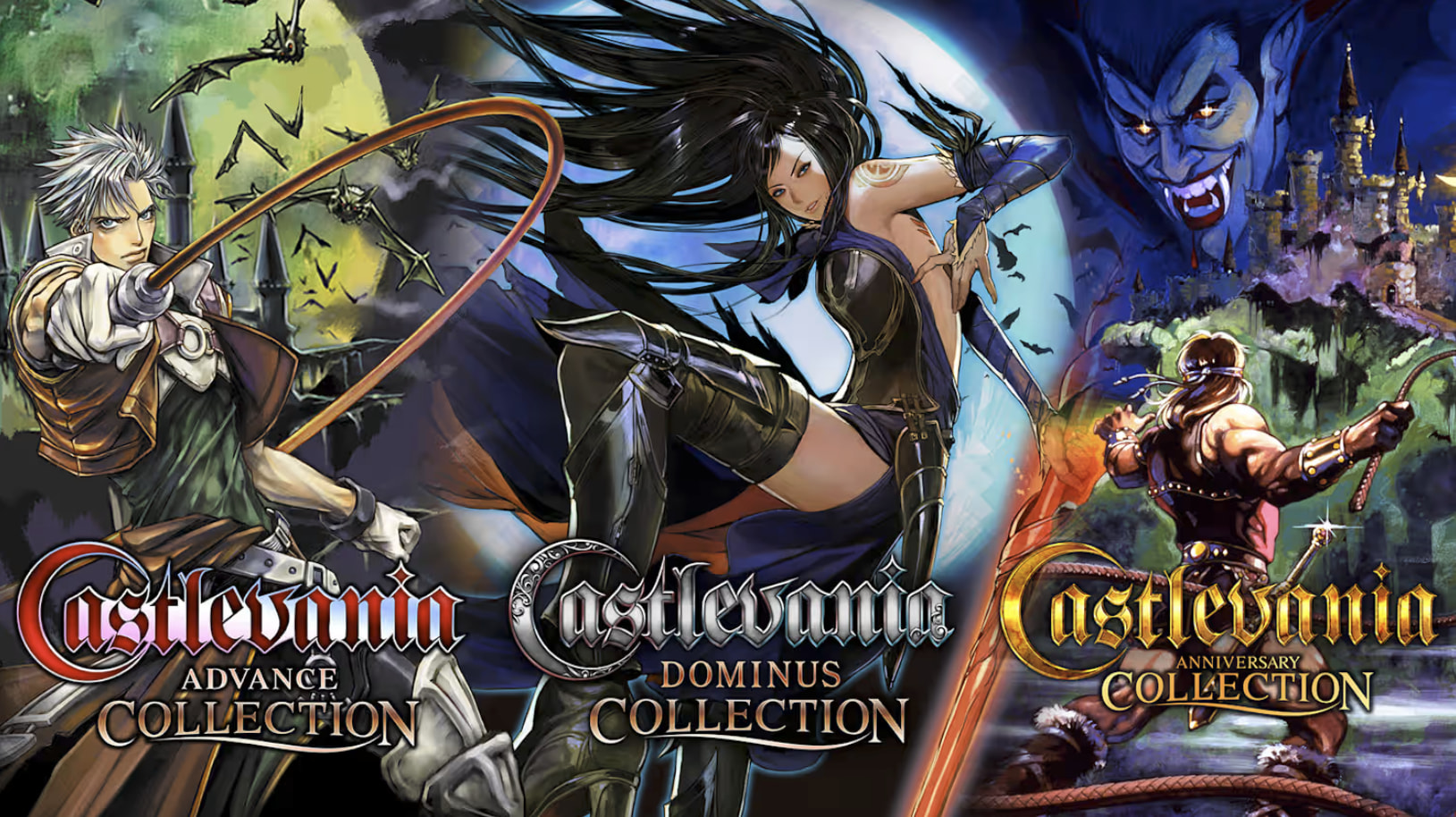 | Metroidvanias DS (6, 8, 10) | Castlevania Dominus Collection | Inclui Dawn of Sorrow, Portrait of Ruin e Order of Ecclesia. Inclui o Haunted Castle. |