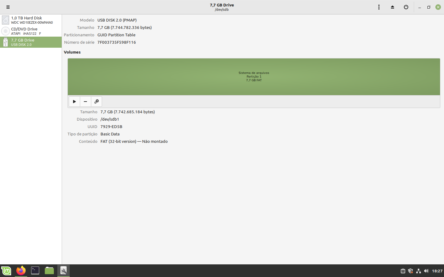 “Pendrive corrompido apos usar o etcher” essa é clássica! Rsrs. Rlx q seu pendrive n foi corrompido, basta no Discos vc ir naqueles 3 pontos no canto superior direito e ir na opção formatar disco e depois vc cria uma partição fat32. Só isso.
