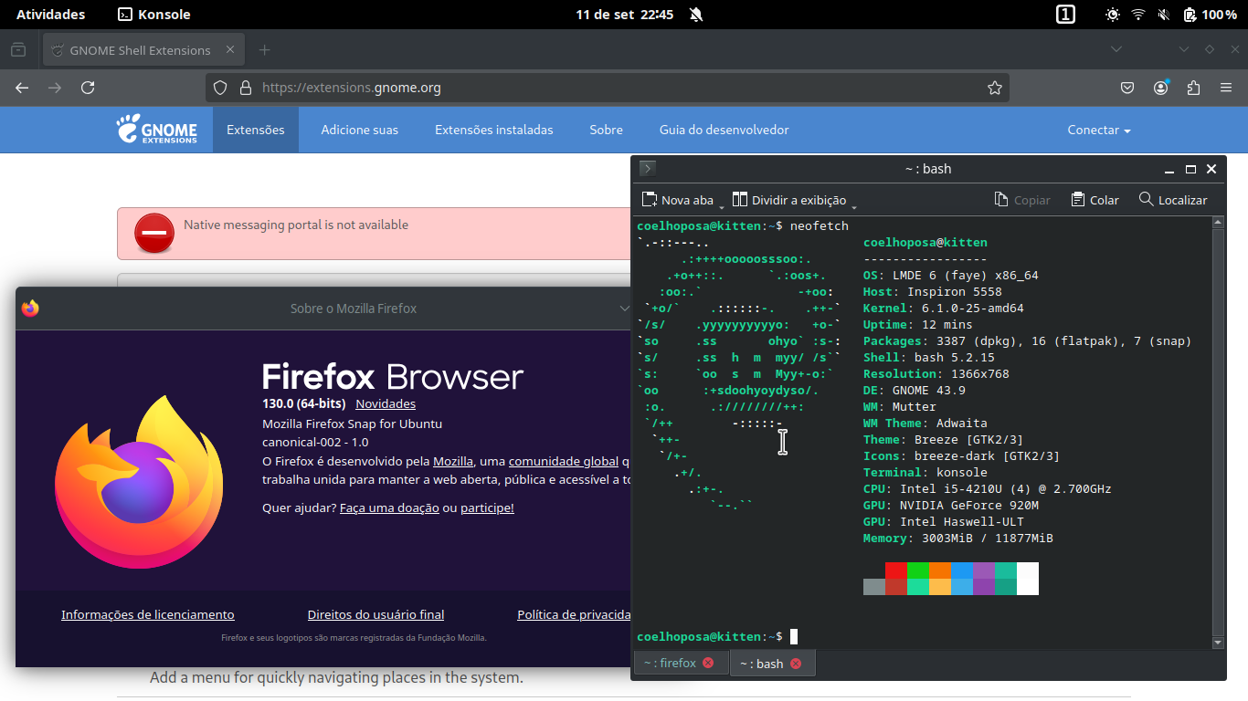 O KDE pode ser todo bugado, é pior que o Gnome (ainda acho que o pessoal poderia abandonar o KDE e focar no Gnome), mas eu não consigo (ainda) usar o Gnome e a gota d’agua foi eu não conseguir falar no discord enquanto jogava. Talvez eu de outra chance em algum futuro próximo, quando meus jogos pararem de piscar na tela quando eu abro.
