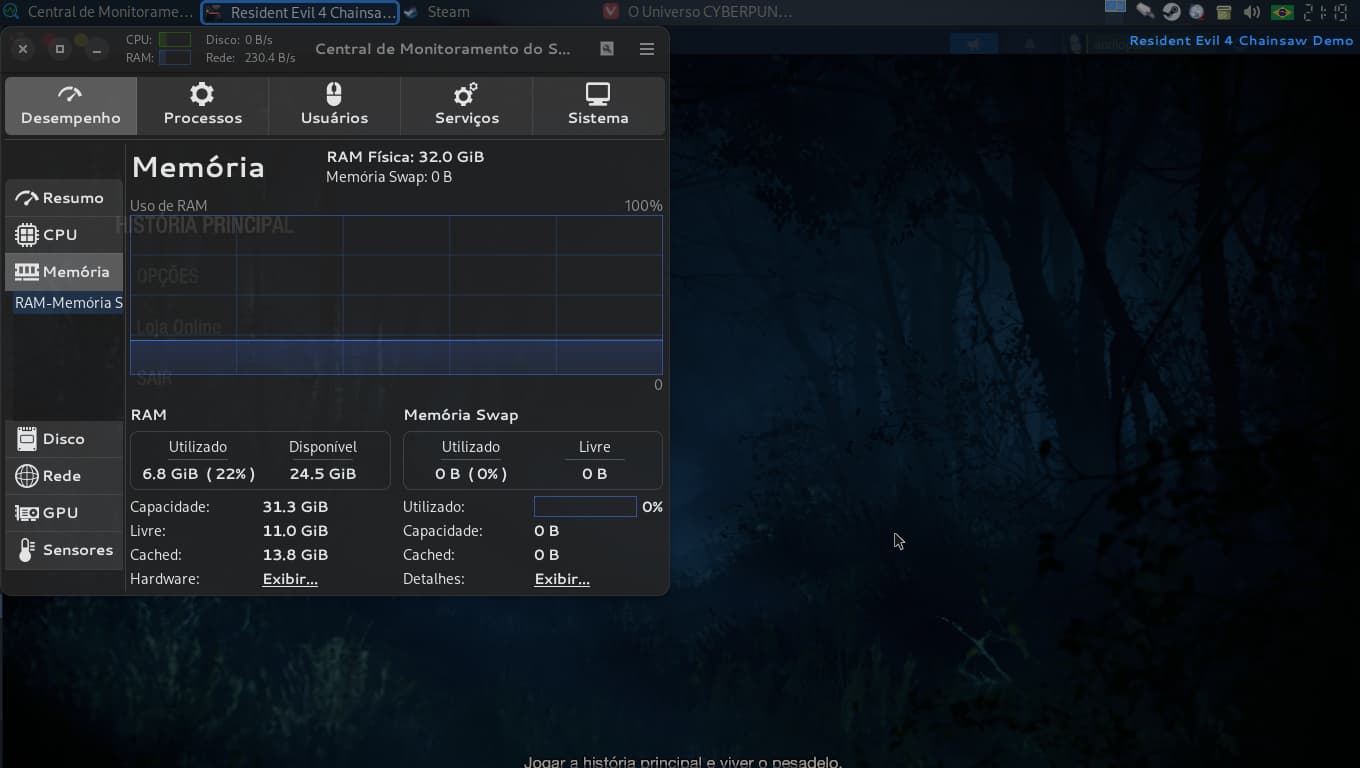 Meu peppermint consumiu praticamente um pente de 8GB quando fui jogar a demo do Resident evil 4 remake chainsaw.