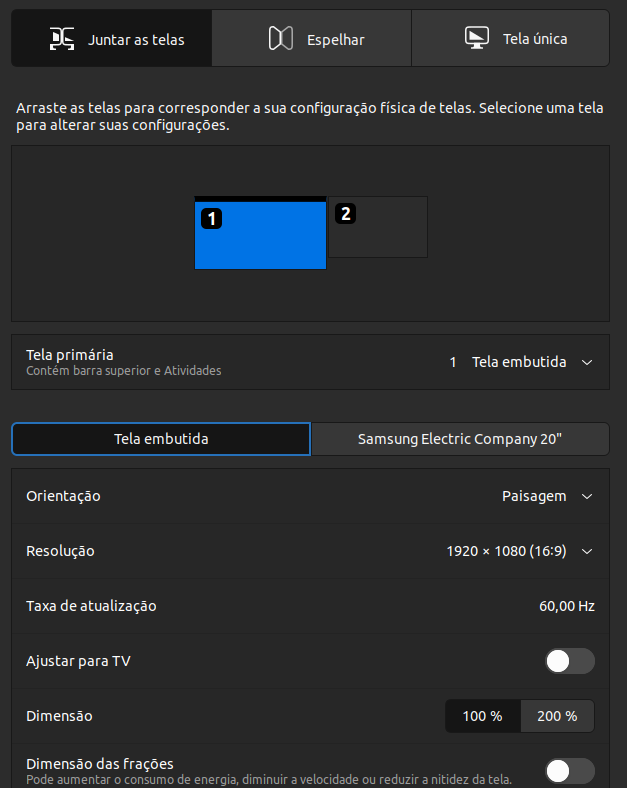 Estou com um problema para usar duas telas com o Ubuntu 22.04.3 LTS.
