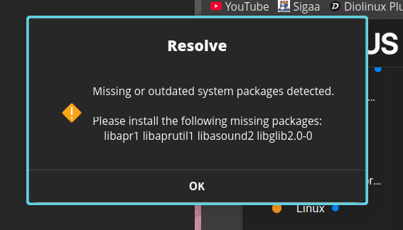 Extrai a pasta e dei um duplo clique no instalador. Apareceu a primeira tela pedindo dependencias. Copiei e com “sudo apt install . Rodei novamante, caiu em outra janela pedindo dependencias, fiz o mesmo processo.