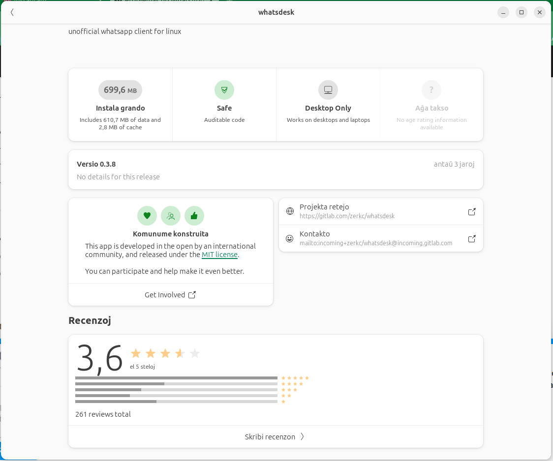 Tentei várias versões do WhatsApp nesse PC e parece que só a versão web que abro no navegador funcionam 100%, tentei várias versões que achei na loja de aplicativos do linux e nenhuma funcionou completamente. O pessoal do Diolinux (https://plus.diolinux.com.br/) recomendou usar a versão que você fez e ela tem apresentado um bom funcionamento somente falhando no som.