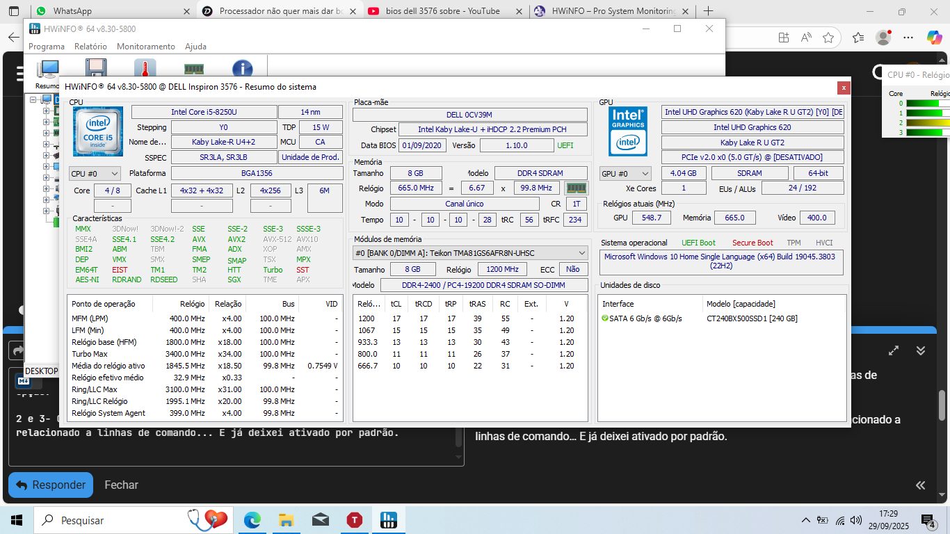 O Redcore também se mantinha sempre perto de 4.000 MHz, mas as compilações levavam a Temperatura a quase 100ºC durante longos minutos. – Nunca atingia 100ºC, pois nesses momentos baixava para 3.800 ou 3.700 MHz, para compensar. – Mesmo assim, resolvi experimentar desabilitar o Turbo na placa-mãe, em 20 Junho 2022: