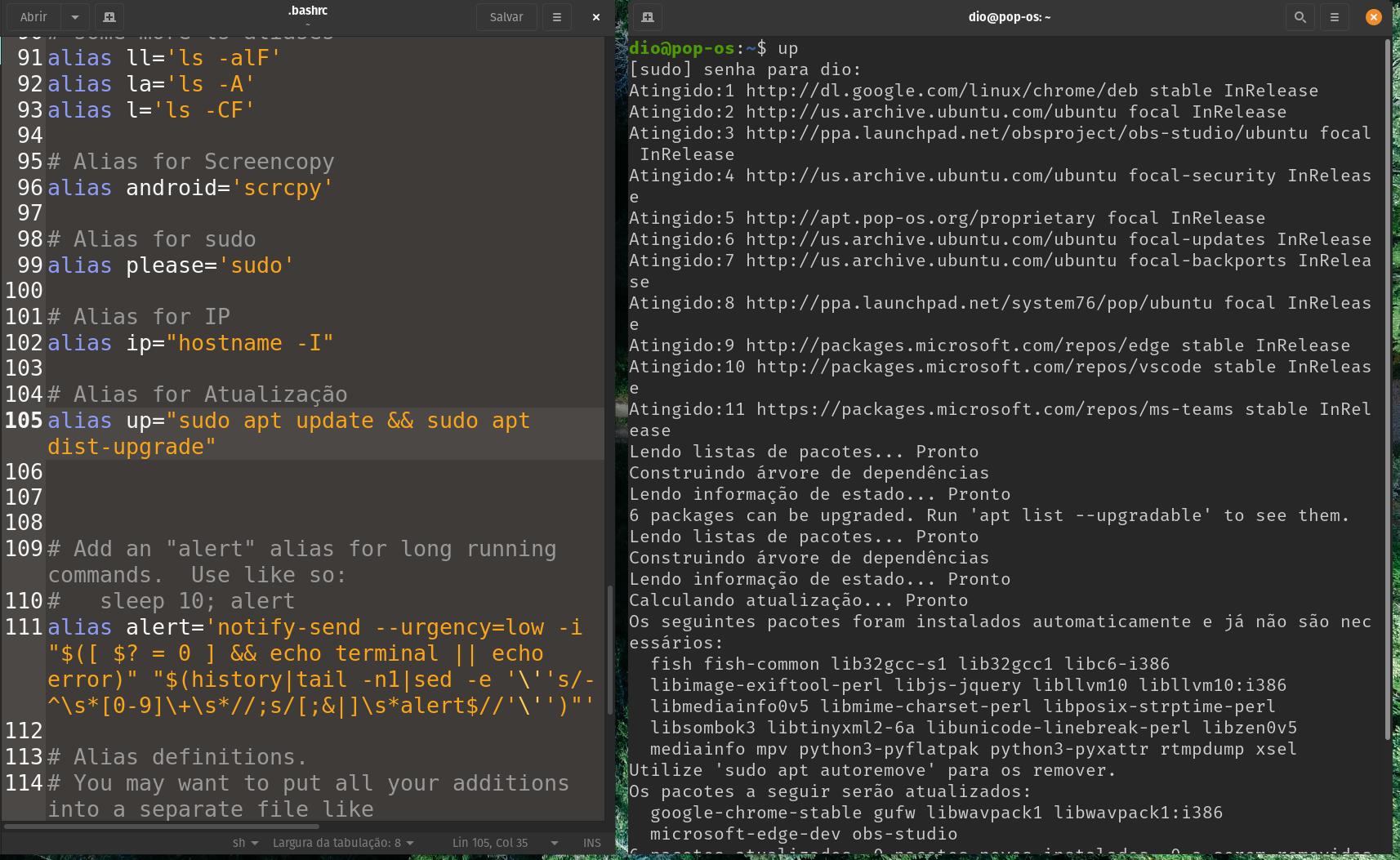 Exemplo para o comando “up” atualizar o repositório e o sistema: