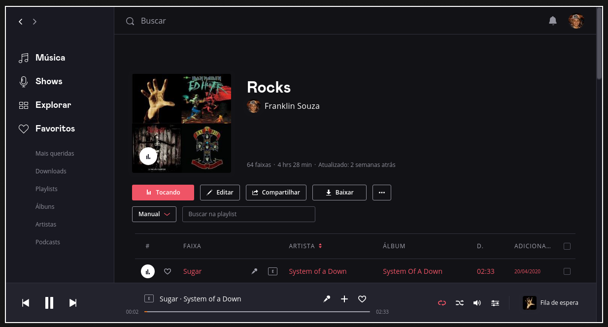 Utilizo o Deezer pois tenho um chip da TIM e ‘‘Não sei se todos os planos são assim’’ ele fica de ‘‘Graça’’, e como ele não tem o player nativo para linux, eu utilizo o Mellow Player para conseguir utilizar o mesmo. Gosto dele pois funciona da mesma forma que o Spotify, porem nele por ter conta eu consigo baixar as musicas e usar mais de boas.