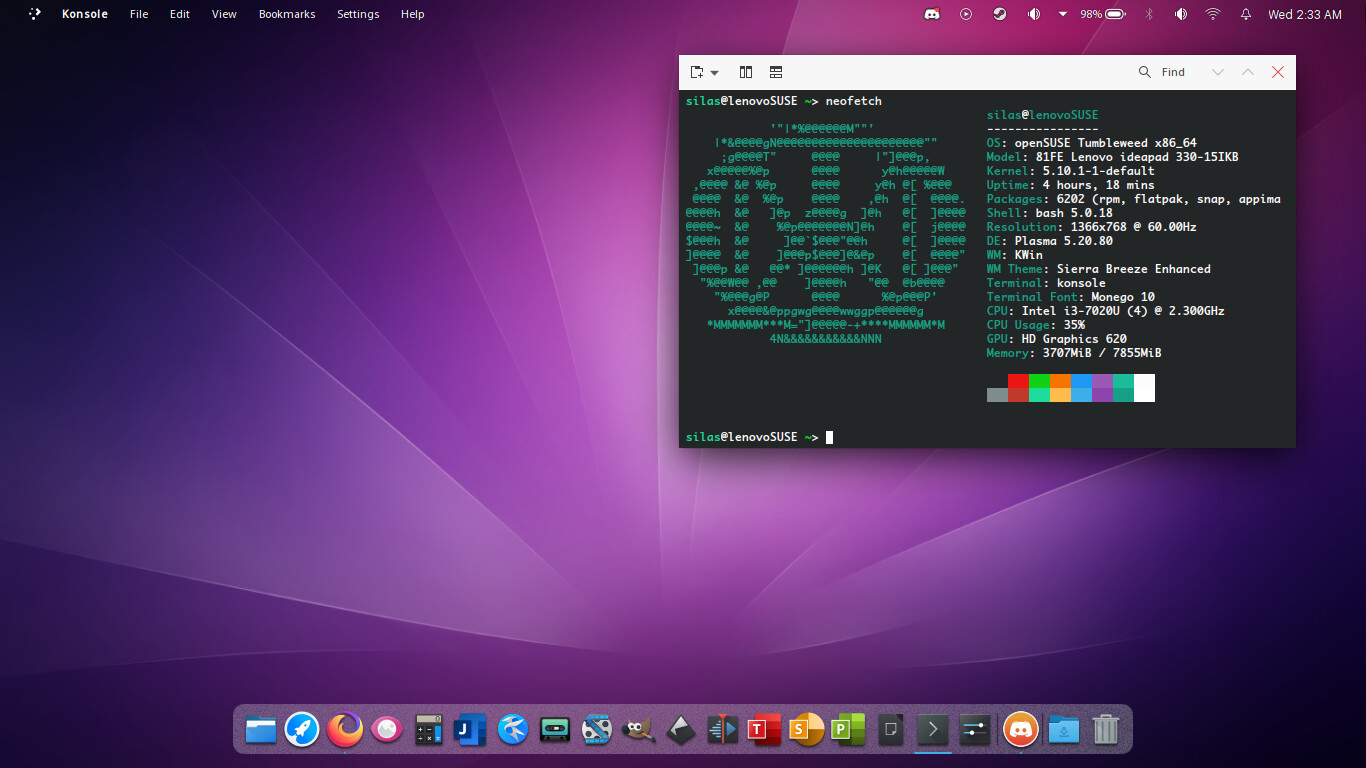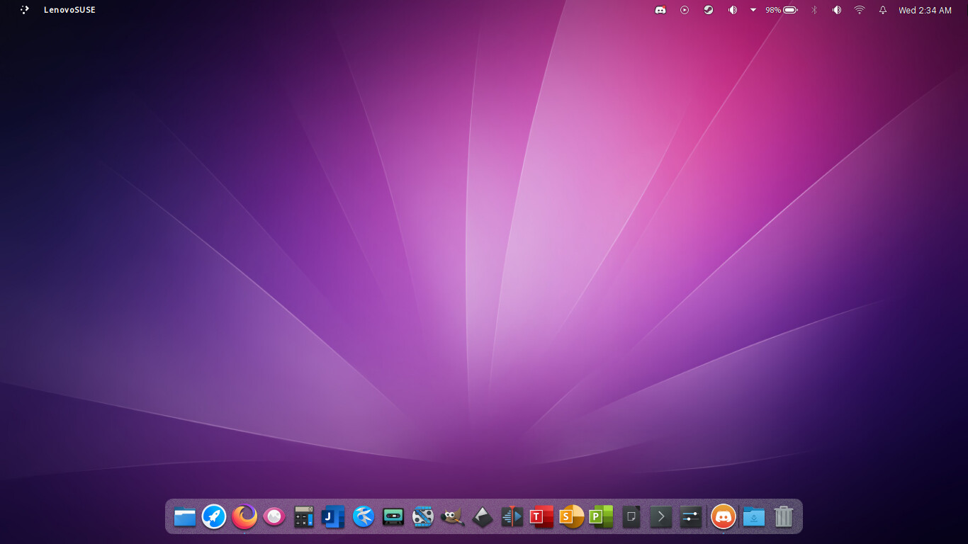 Eu realmente não tenho motivos para deixar o openSUSE. Me atende extremamente bem, eu gosto do KDE Plasma