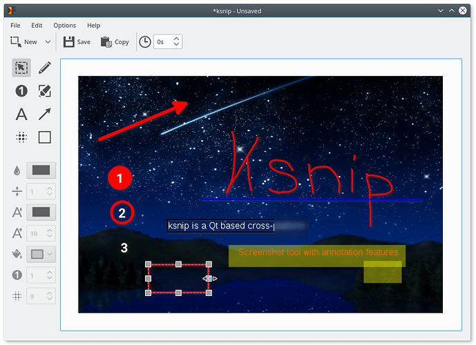 ksnip é uma das (se não a) ferramentas mais completa do mercado (dentre pagas e gratuitas) para tirar screenshots (os famosos “prints”) para desktop (isto é, Windows, Mac e Linux). Além de tirar prints ela permite edições tipo anotações estilizadas como números destacados, setas, retangulos, elipses, blur, texto, marcadores, etc… ou seja, tudo que você precisa pra destacar e passar a informação desejada, o programa ainda permite fazer upload pro Imgur com a suporte a autenticação, ou seja, na sua conta ou anonimamente!
