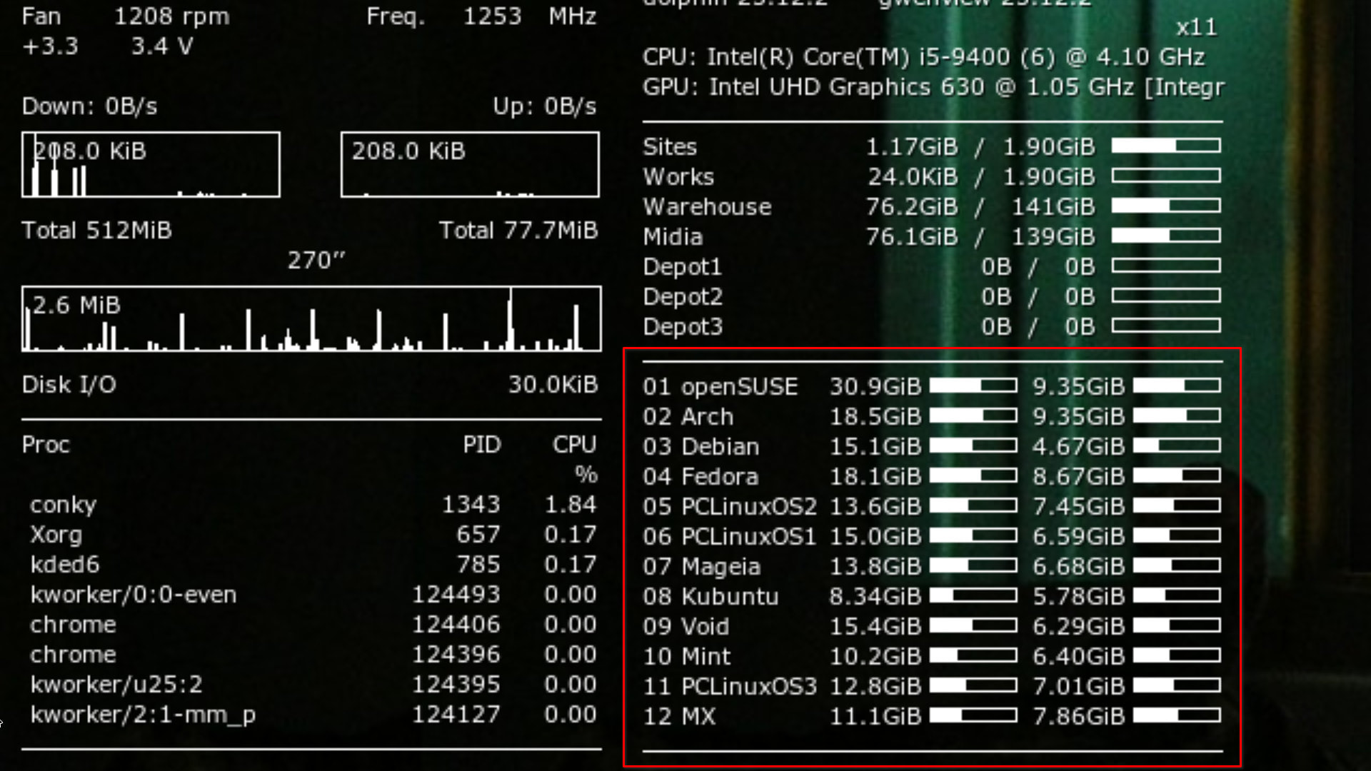 No momento, openSUSE, Debian (testing), Fedora, Mageia, Void, MX Linux e PCLinuxOS me atendem muito bem. – Se precisar, reinicio o computador e continuo com qualquer uma dessas 7 distros.