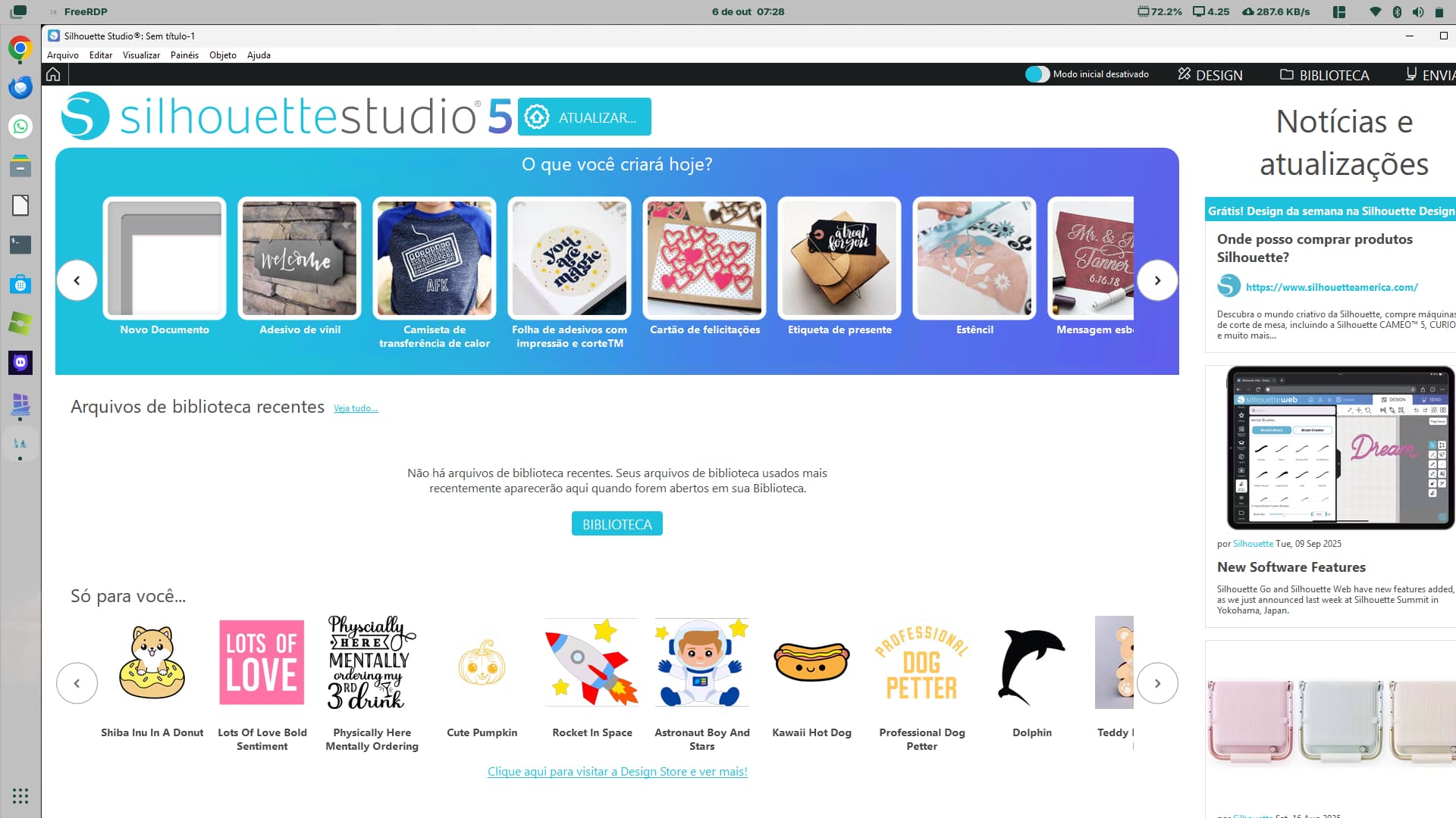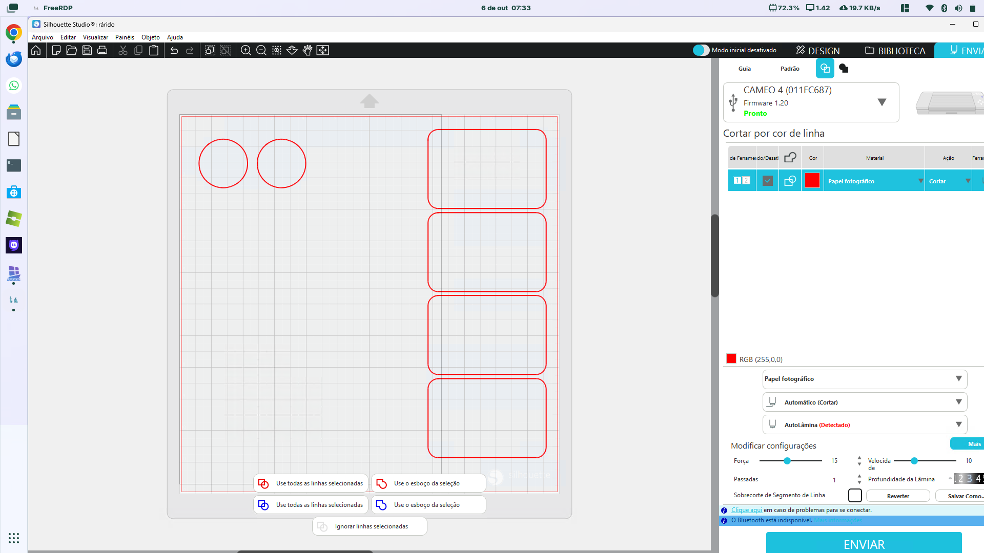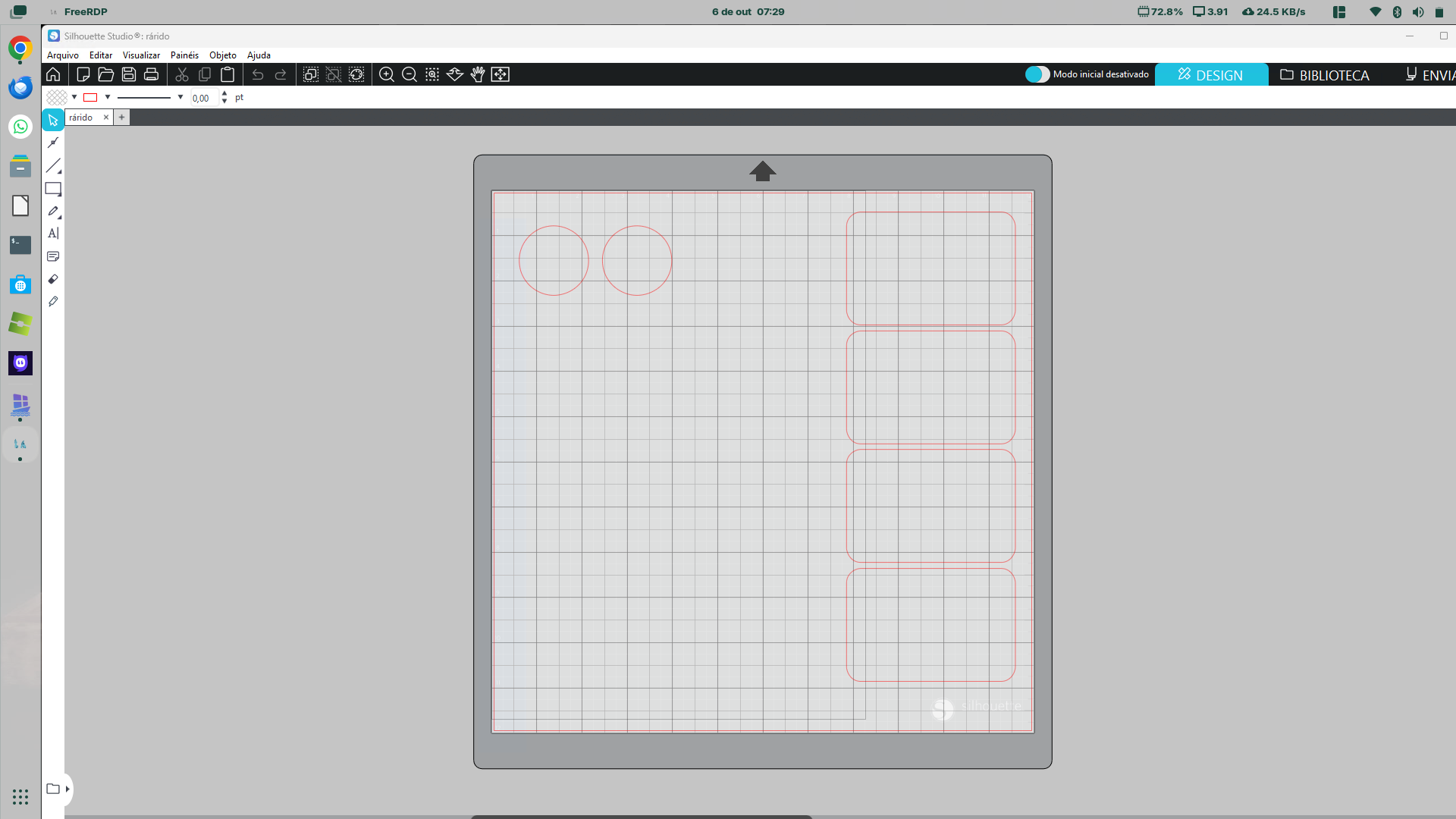 A ferramenta em questão é o Silhouette Studio, que infelizmente é a única capaz de abrir os arquivos no formato .studio3. Graças ao Winboat (que encapsula o ambiente Windows em um contêiner)que instalei através do LinuxToys, consegui rodar o programa e realizar meu trabalho completamente, incluindo o corte na minha Cameo 4 via conexão USB.