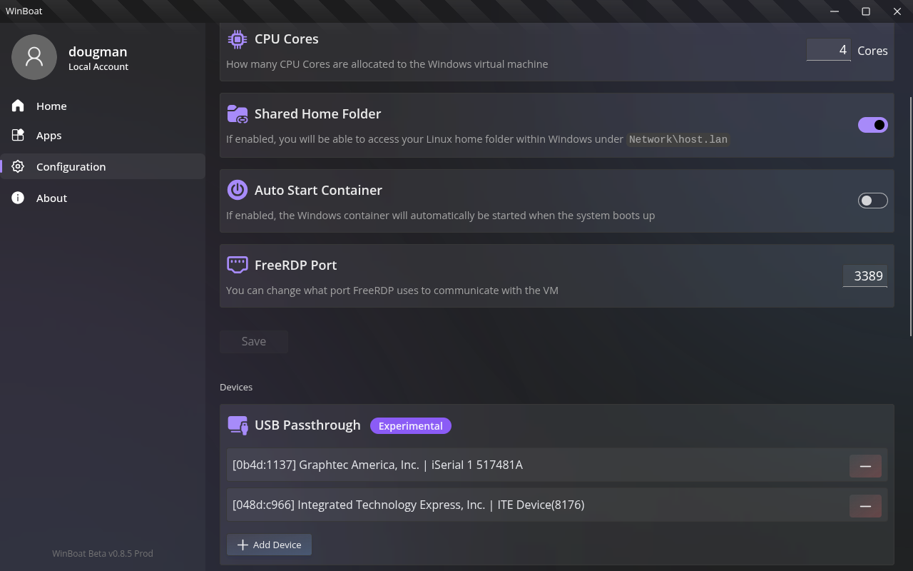 Como era de se esperar ao rodar um sistema dentro de outro, o desempenho não é máximo. Tive alguns contratempos notáveis: