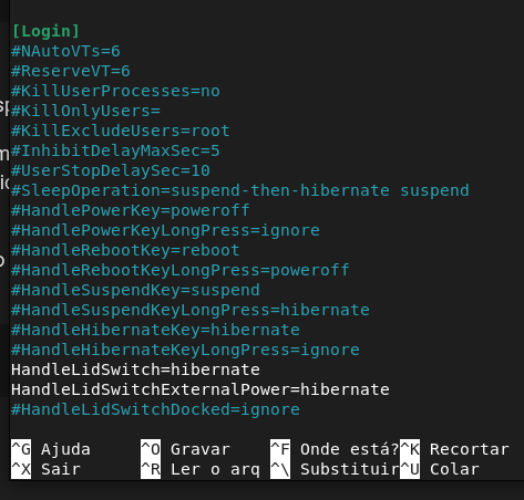 Editando o arquivo de configuração do logind: