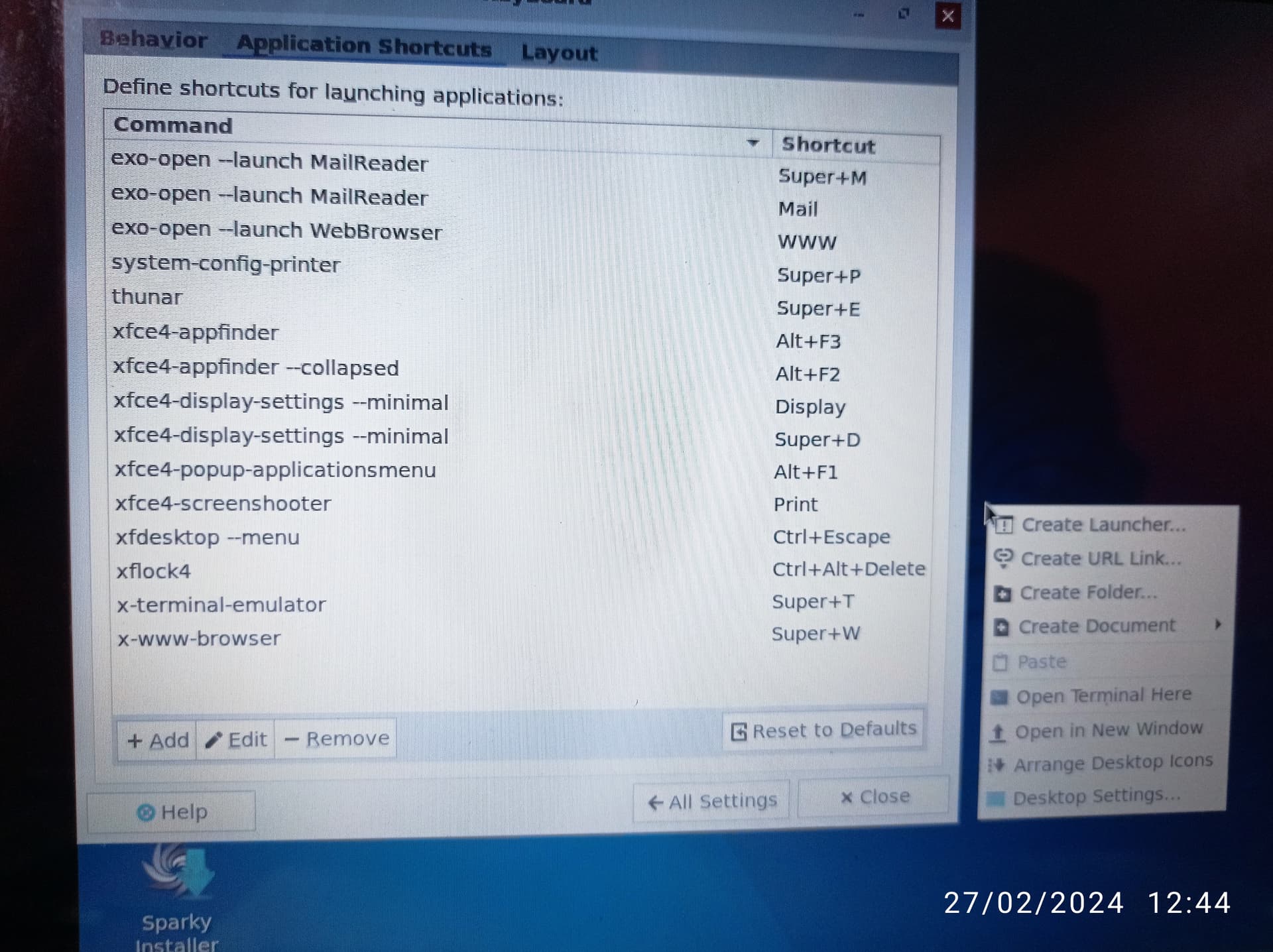 o sparky linux 7.2 e 6.7 não funciona a tecla super/windows mas nas configurações de atalho do teclado esta (alt + f1) e não funciona. quando toco essas teclas ele interage como se fosse o click direito do mouse