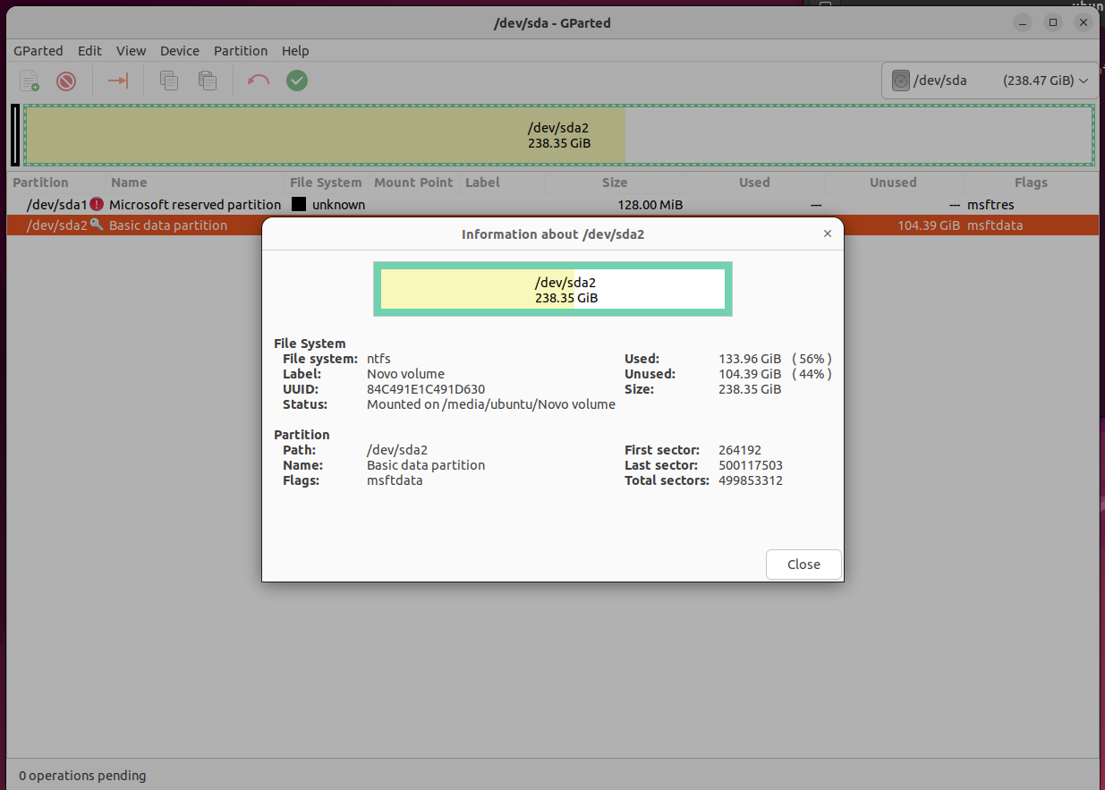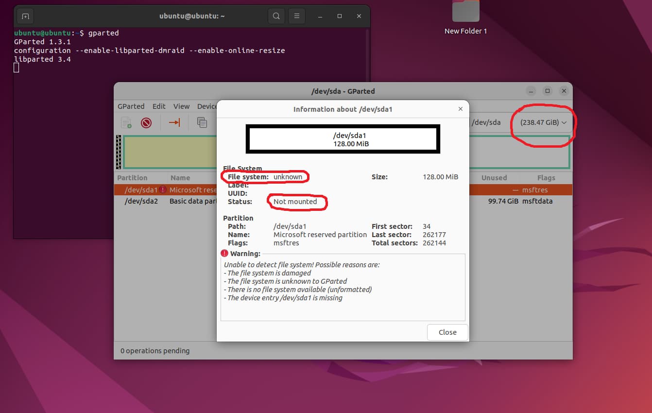 Esse negocio ai na imagem vai montar não, isso dai não tem filesystem ou ele esta quebrado. Outra coisa que pode estar acontecendo é que o Gparted não esta com o suporte ao filesystem instalado.