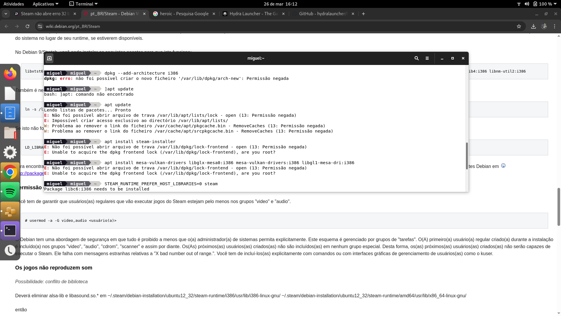 Para instalar a Steam no Debian é necessário ativar o suporte a biblioteca de 32 bits. Siga com atenção os passos da wiki ou instale a versão em flatpak.
