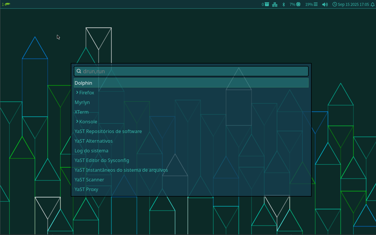 No mais, muito interessante esse setup do OpenSUSE com Sway, parecem umas configs bem interessantes já fora da caixa. Como ficam os atalhos no teclado? Eu gostaria muito mesmo de usar o OpenSUSE, me parece uma distro muito boa, mas sempre tenho problemas aqui nos computadores de casa… Já tentei mais de uma vez, achei ótima a implementação do KDE deles, mas sempre dava algum problema que me impedia de continuar usando. Talvez algum dia eu consiga hehe.