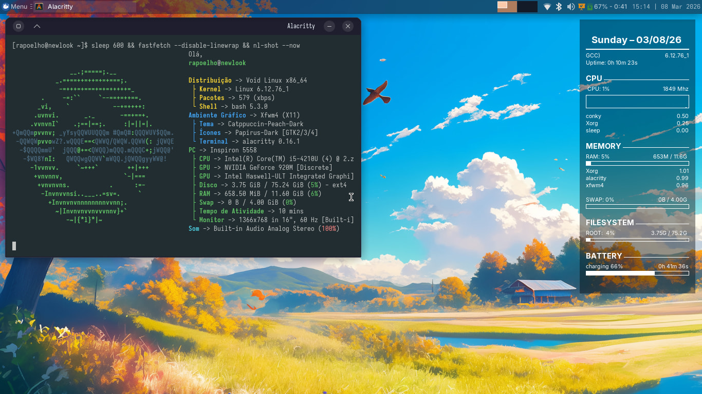 E o Void e o Arch podem ser as minhas distro do dia a dia. Eu gosto de como o Arch funciona e gostei de como o Void funciona e como o gerenciamento dele é simples. Ao menos, nessa primeira impressão e enquanto eu estava fazendo os scripts de instalação dessa minha configuração do XFCE.
