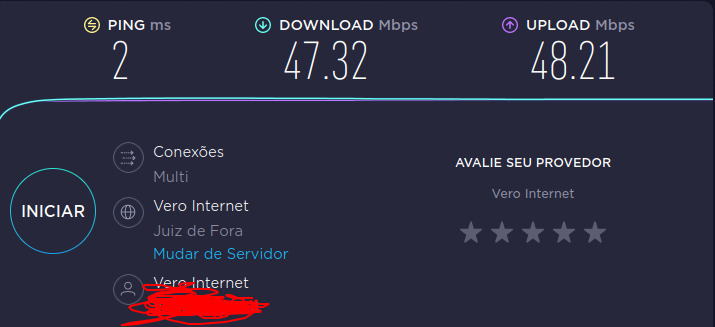 Eu tbm tenho a Vero kkkkkk contratei 220mb e chega 240mb nos testes tanto via app cli do speedtest quanto no site do mesmo