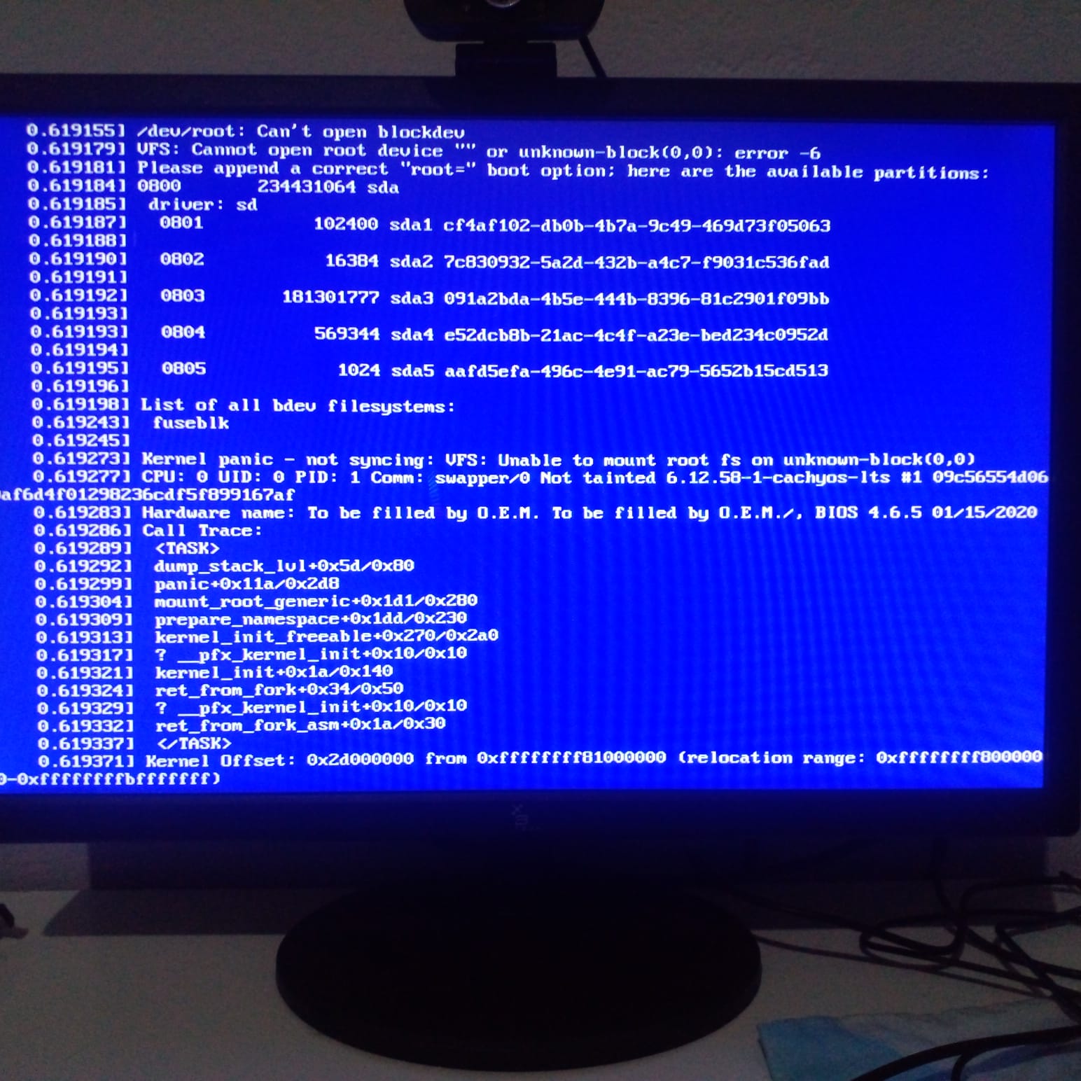 Olá. O problema não está em baixar o CachyOS, mas em instalá-lo. O sistema não está conseguindo montar (habilitar) a partição-chave para que funcione.