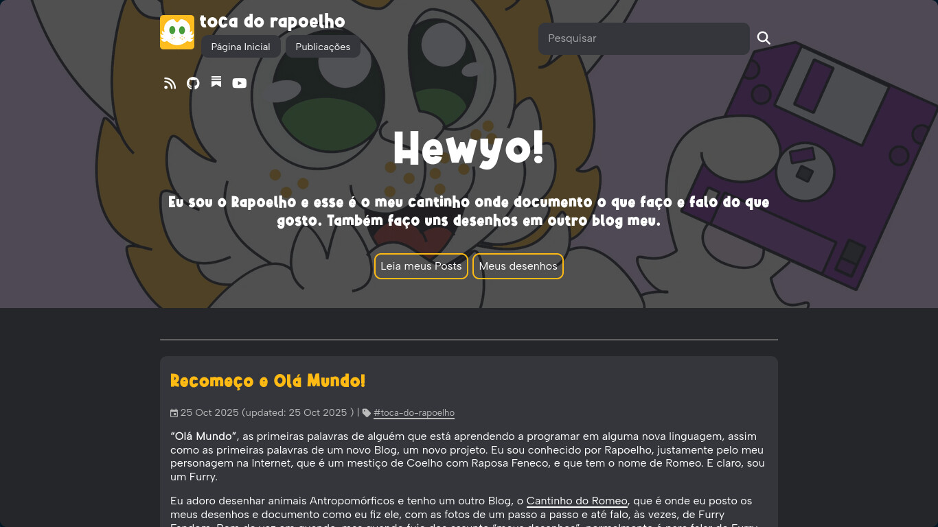 Eu tenho um Blog no Wordpress, que é o Cantinho do Romeo, meu Blog de Desenhos, porém em queria fazer um Segundo Blog, afinal, queria falar de outras coisas que não fossem sobre os meus desenhos.