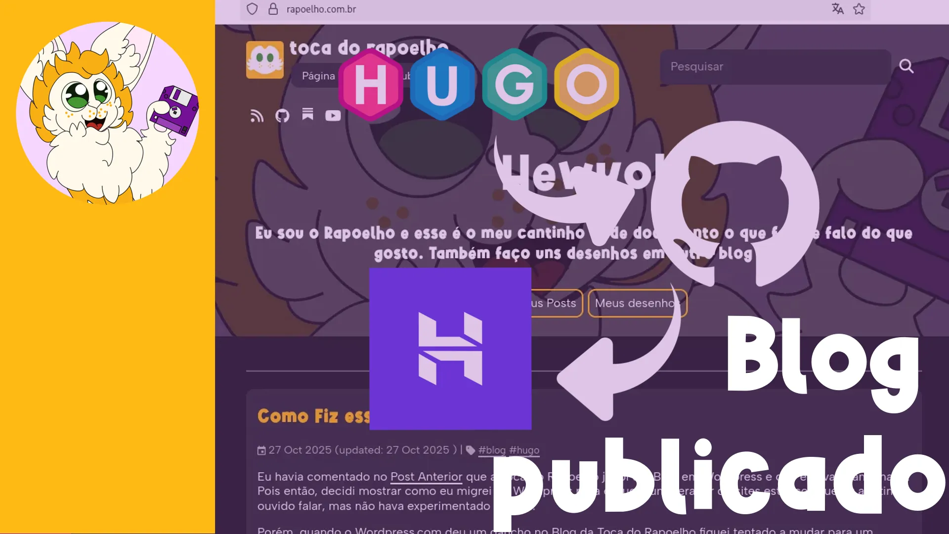 Achei o Hugo tão gostoso de mexer, que estou considerando migrar o meu Blog de Desenhos para o Hugo, embora que isso vá ser um desafio maior, por causa da quantidade de postagens. E também, por causa de algumas necessidades, como agendar as postagens; que não é algo que o Hugo faz nativamente, afinal não há um servidor como no Wordpress.