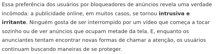 Mais do que pela privacidade, a primeira coisa que me fez considerar usar um adblock foi porque os anúncios se tornaram bastante irritantes.
