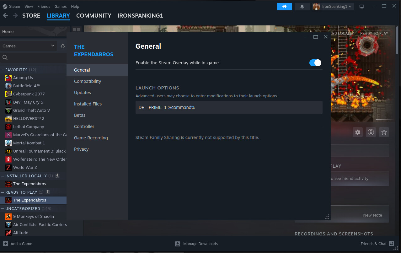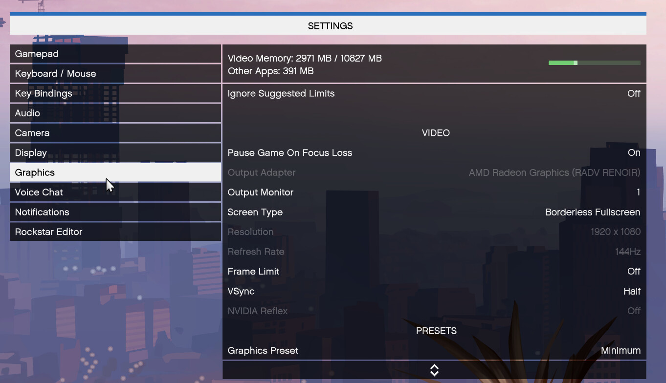 O jogo abre e funciona normalmente mas nas configurações gráficas só aparece a minha placa de vídeo integrada, eu não consigo trocar pra minha GPU dedicada. Eu testei tanto no GTA V Legacy quanto no GTA V Enhanced, e acontece a mesma coisa nos dois. Eu testei trocar a versão do Proton e o perfil de uso no nvidia settings mas não adiantou nada, não faço ideia do que fazer