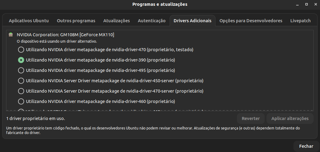 O driver NVIDIA não está sendo reconhecido pelo ubuntu, estou usando a versão 495. Alguém com o mesmo problema ? Ou sabe como resolver ?