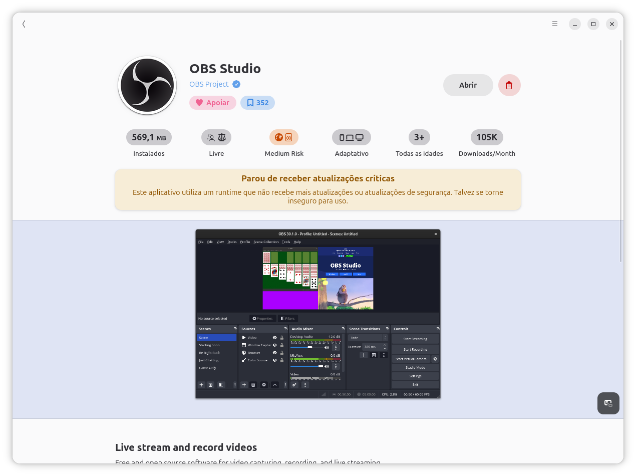 Não tem o OBS Studio no Bazaar! Por que não tem, se no Flathub tem? Será que é alguma treta que não tô sabendo?