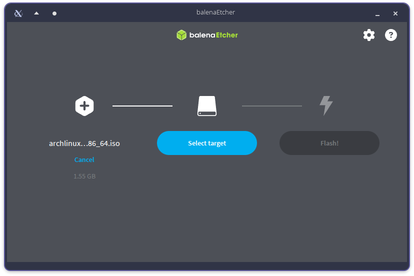 Depois selecione a “ISO”, usei do Arch como exemplo, clicando em “Flash From File”