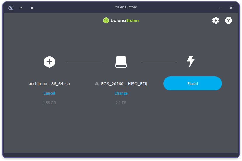 Exemplo usando Balena Etcher, detalhe que só não dei “Flash” pq esse pendrive já tem coisa dentro.