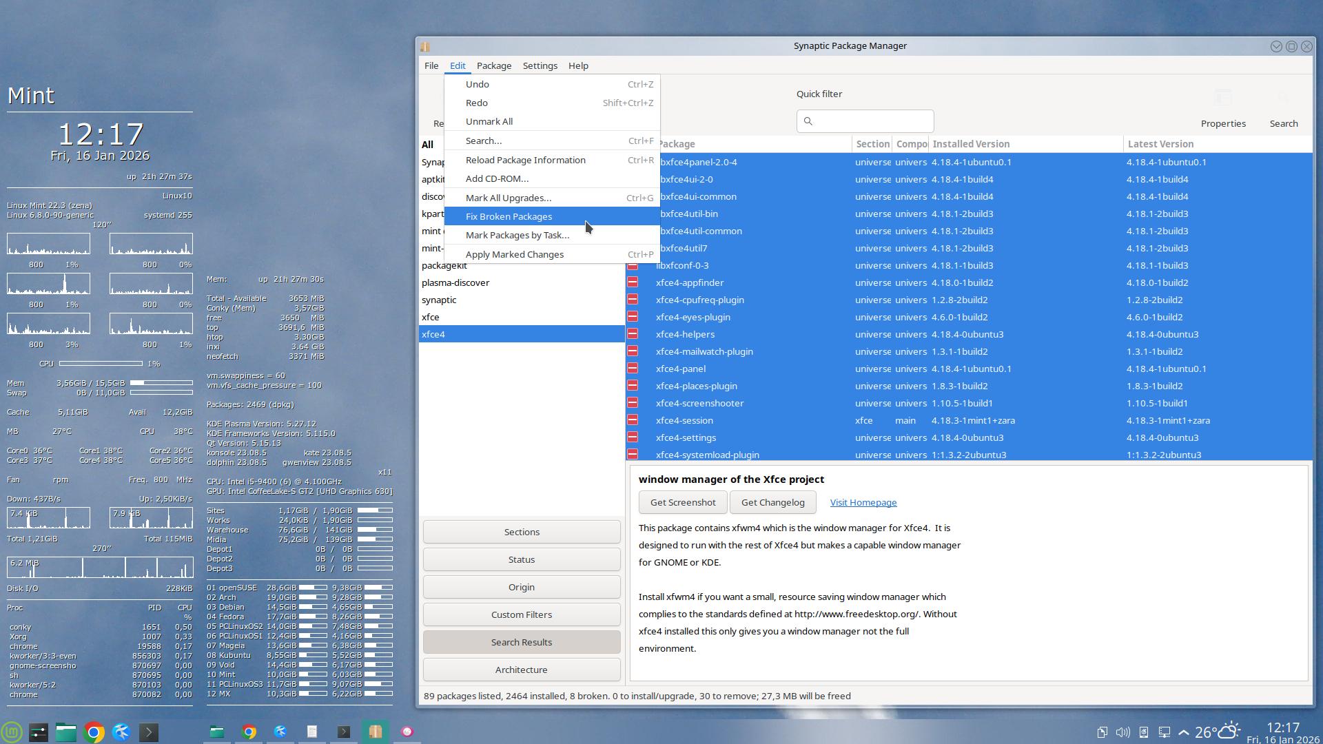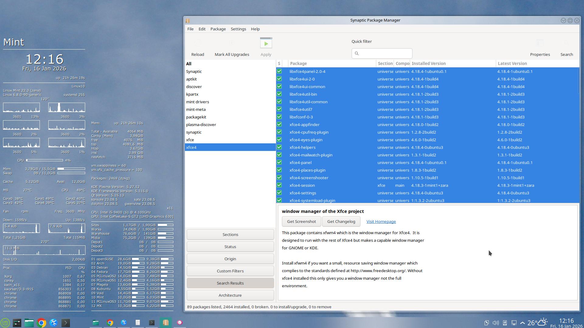 Percorri as Release Notes, as New Features – e nos Requisitos fui obrigado a reinstalar o Xfce inteiro – via pacote “mint-meta-xfce”: