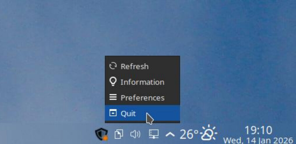 Tratei de fechar essa “lojinha”. – Ela apenas minimizou para o Painel. – Fui lá no ícone do Painel, right-click, escolhi Quit, pra fechar de verdade: