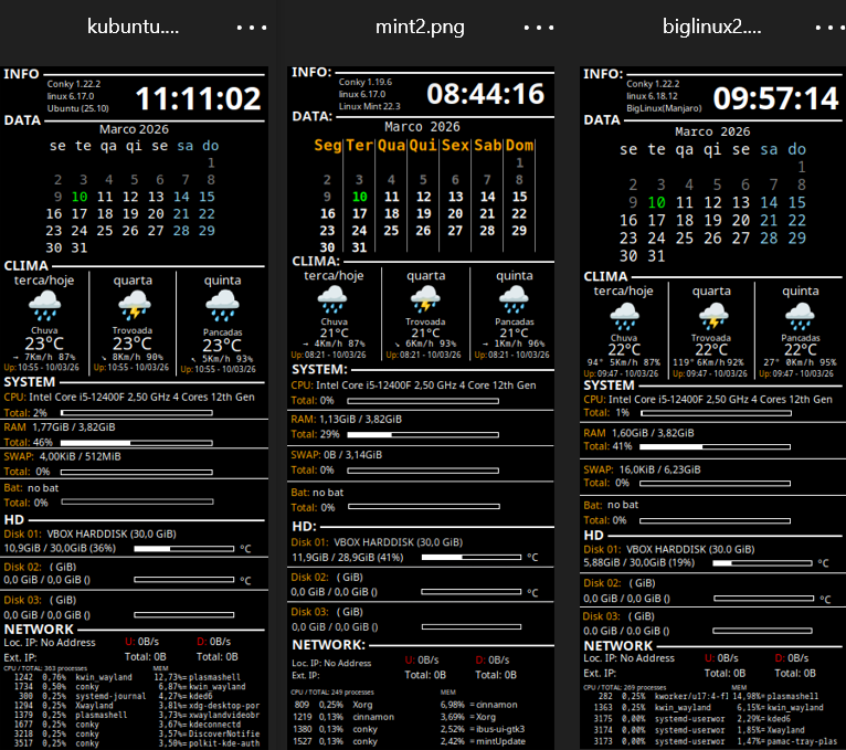 (*) Números 10 minutos uptime, conforme o “Cálculo antigo" do Conky.