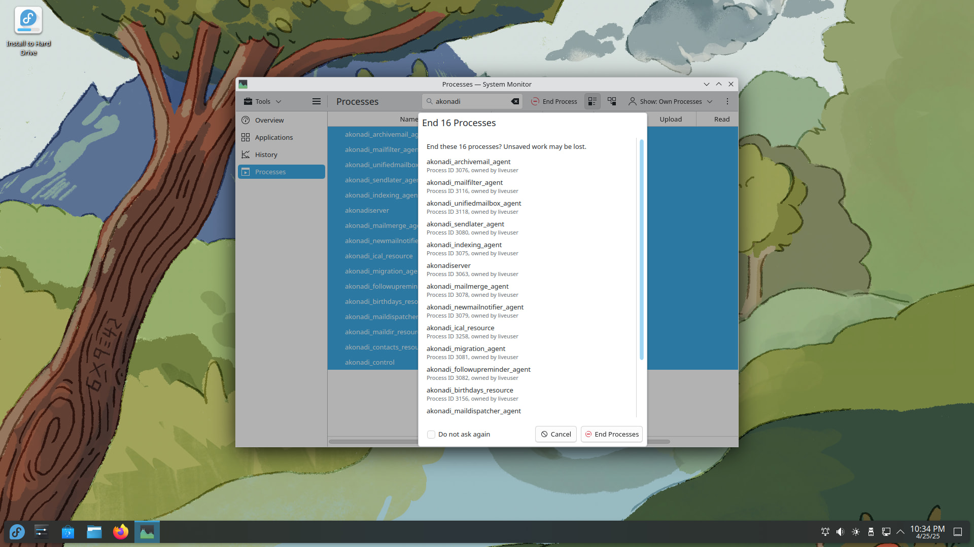 Quando o PIM está habilitado, em geral aparecem 16 ou 17 “processos” com o nome de Akonadi.