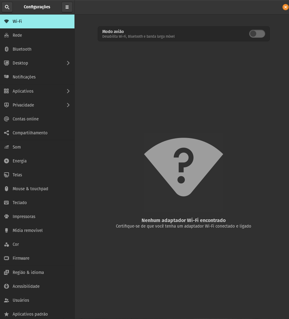 E quando eu tento ir nas configurações de Wi-Fi: