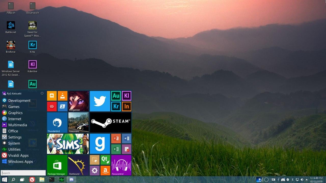 Agora esse aqui é o Manjaro. Eu montei esse menu iniciar baseado no Tiled Menu mas com o objetivo de copiar o Windows 9860