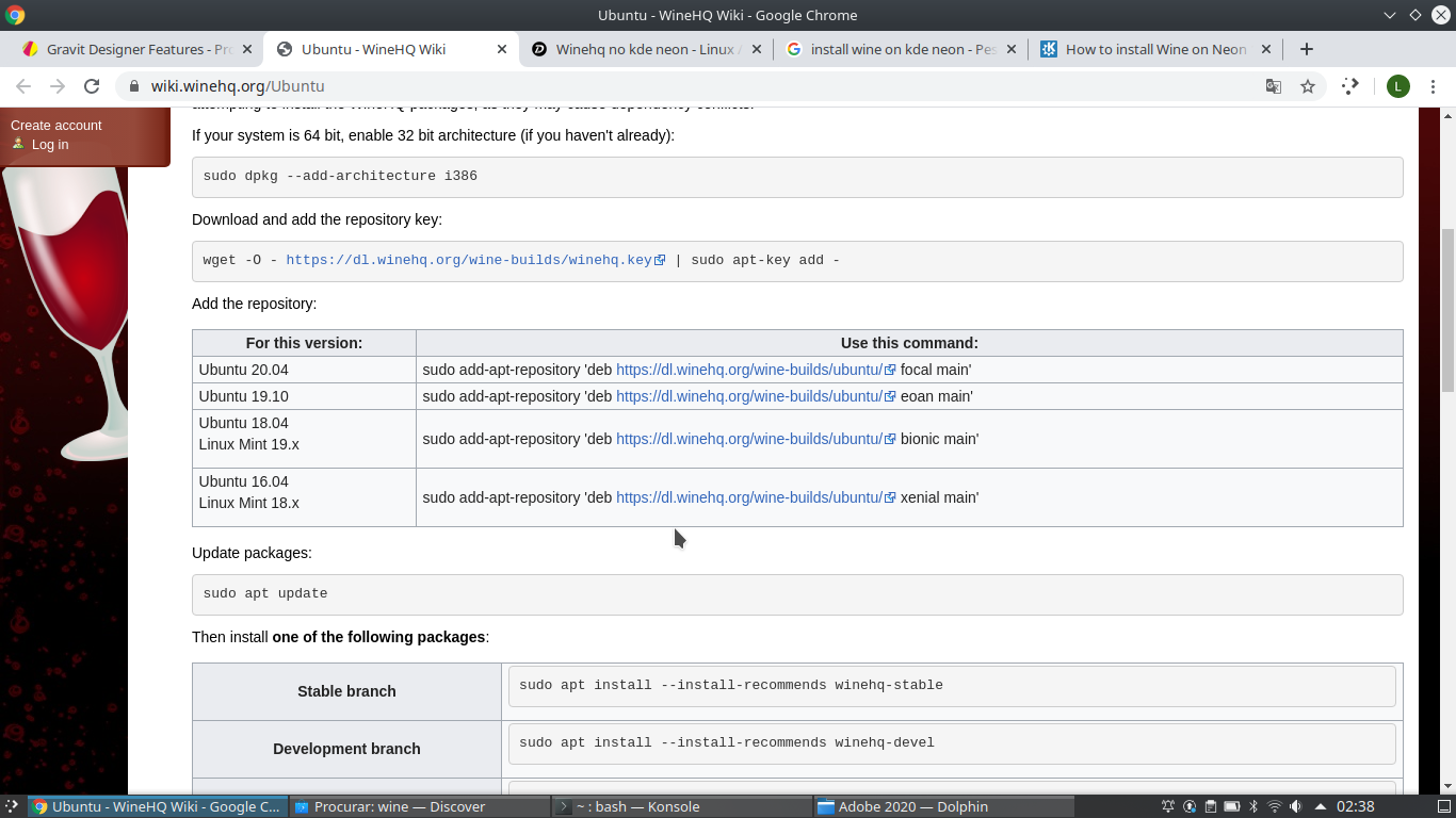eu nao tou a conseguir instalar o wine no meu sistema kde neon alguem me poderia ajudar?