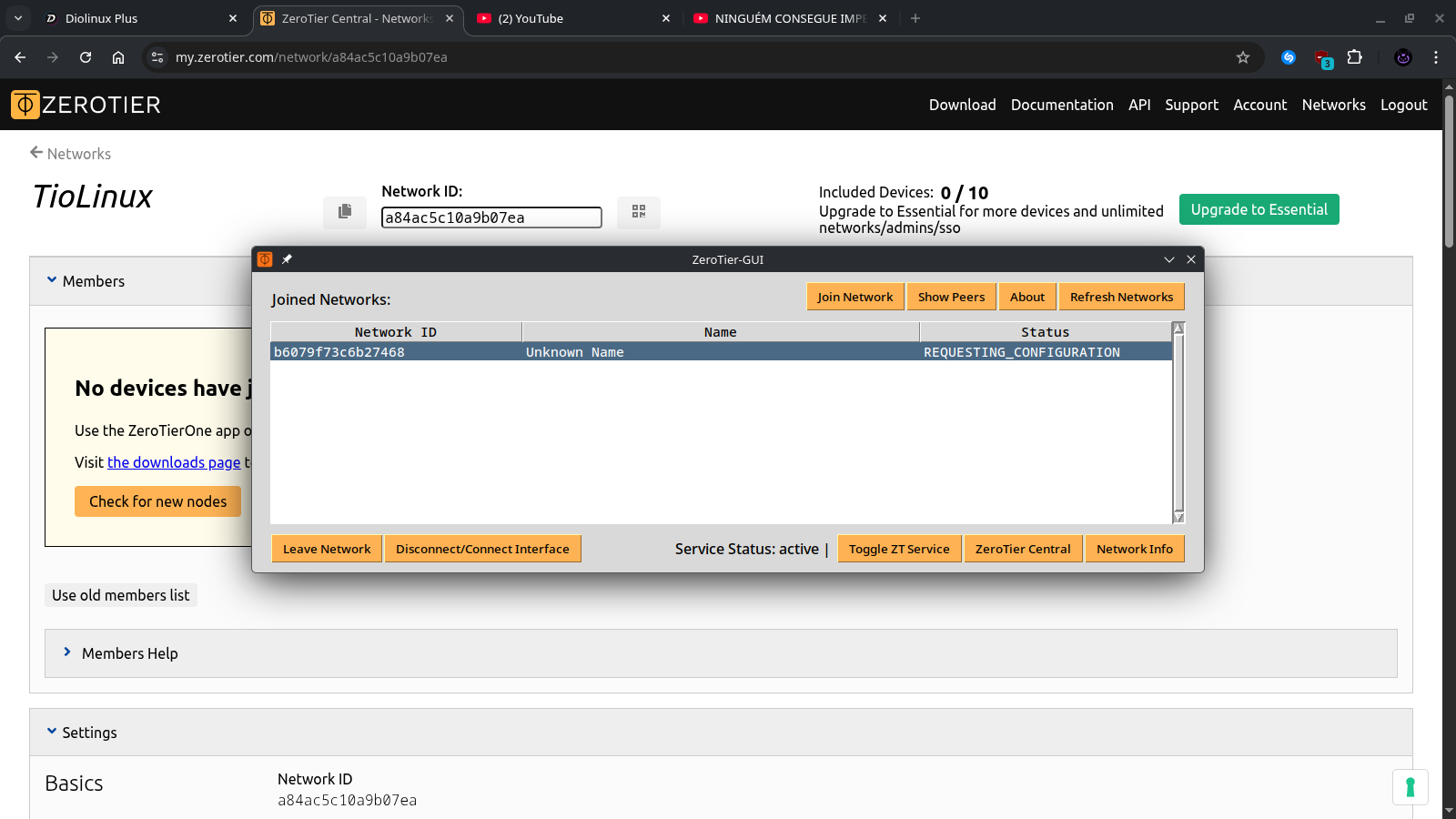 5 - Não pense que acabou, vc tem q autorizar a si mesmo para usar essa rede (mesmo aparecendo a mensagem que vc entrou na rede). Observe que o seu Status está em REQUESTING_CONFIGURATION.