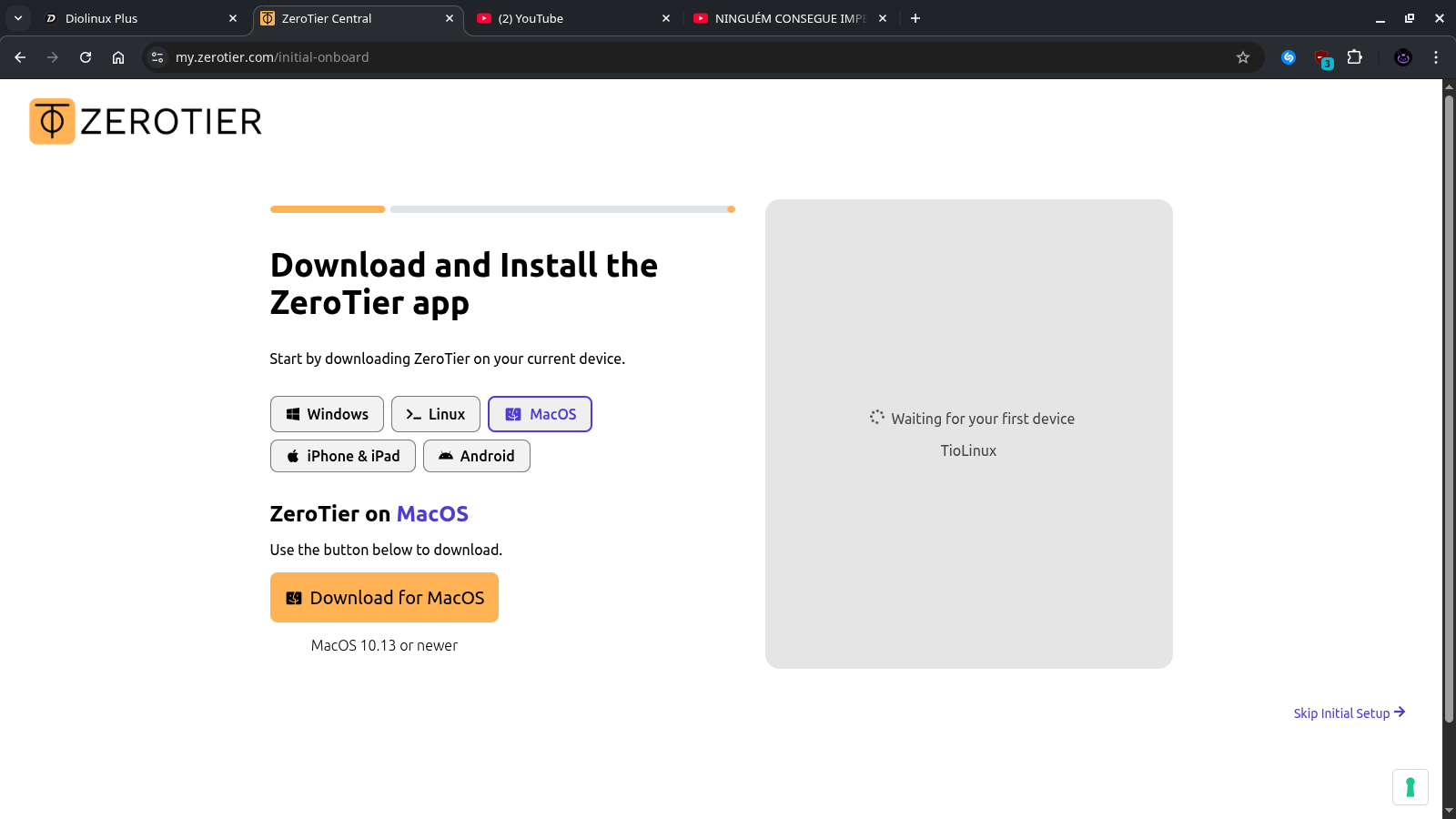 3 - Na tela abaixo, clique em Skip Initial Setup →