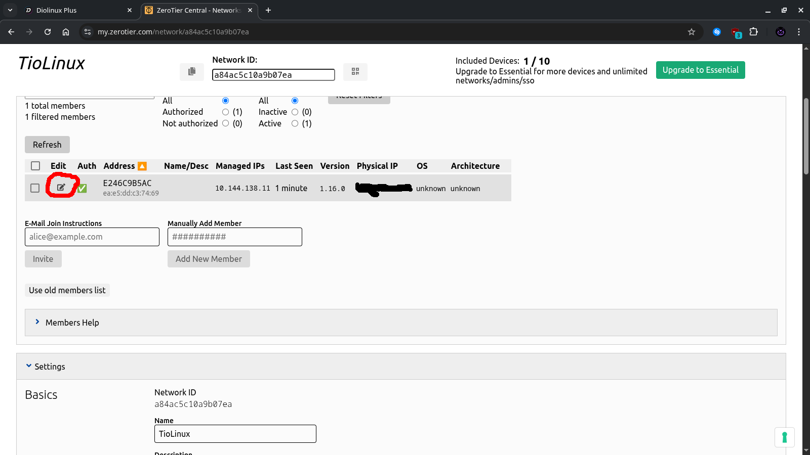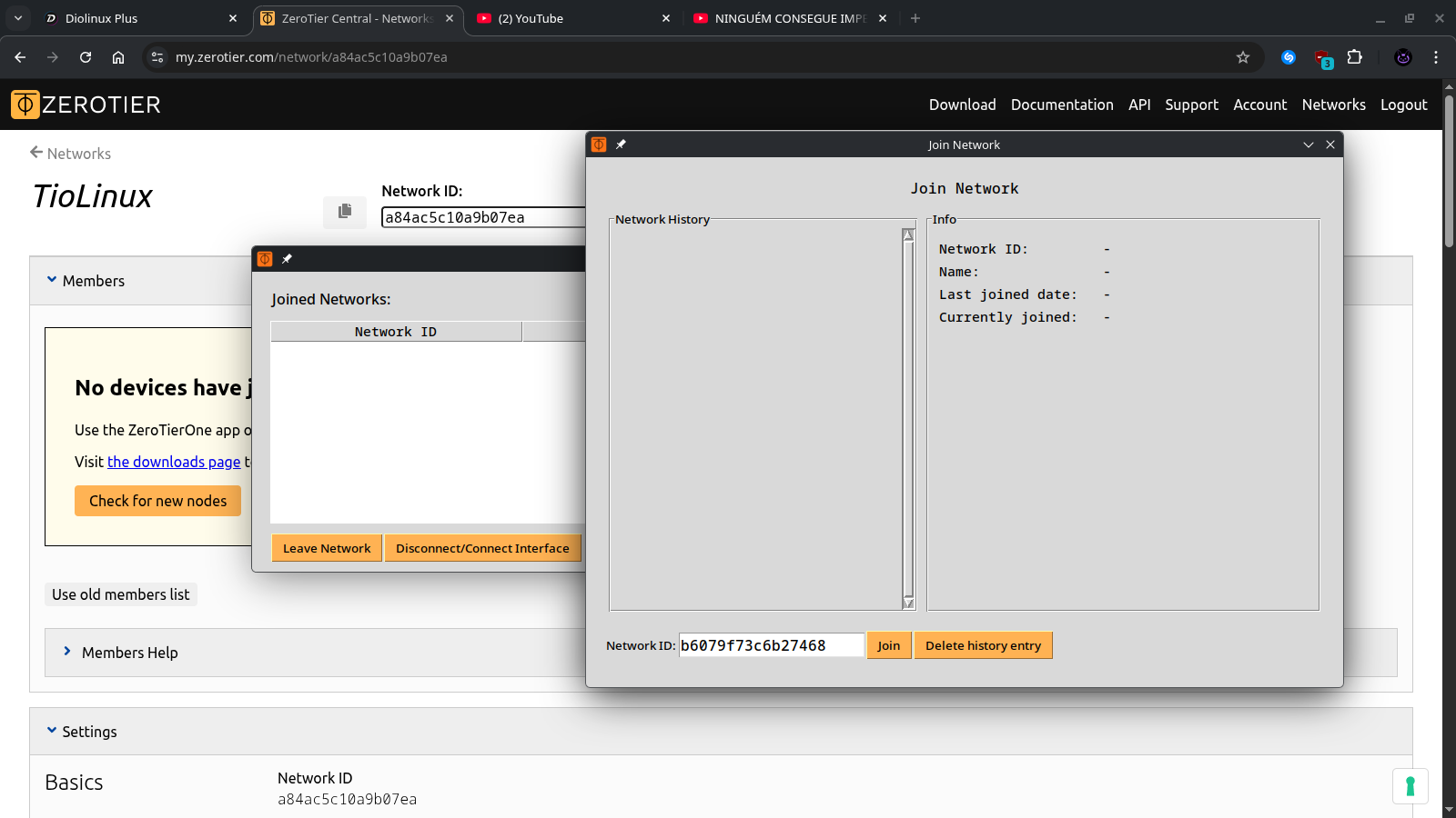 4 - Vc terá a tela abaixo, com o id de sua rede disponível. Clique na sua rede. Abra o Zero Tier gui e vc terá q adicionar a si mesmo nesta rede clicando em Join Network, e coloque a id da rede que criou e clique em Join.