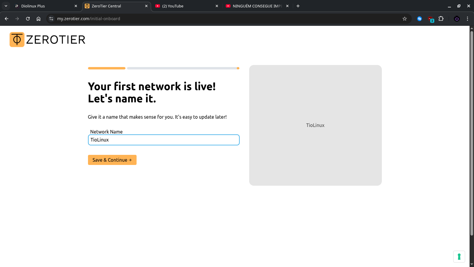 2 - Na tela abaixo, crie o nome da sua rede virtual: