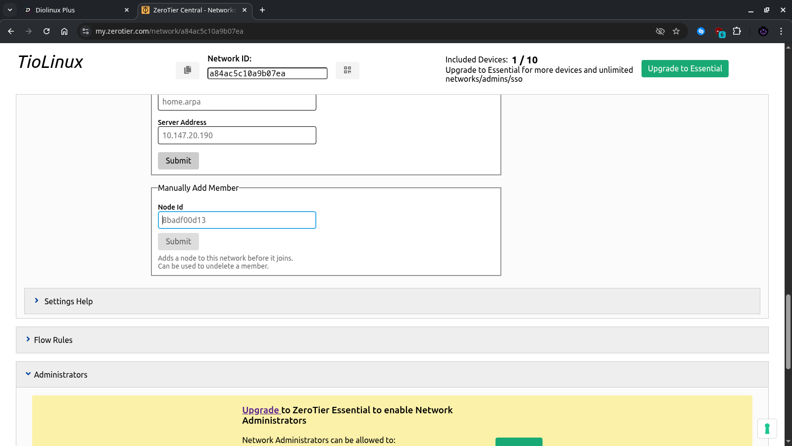 Para criar uma rede, vá aqui (de preferência, no modo To Legacy Central, pq lá informa a id da sua rede, no modo To New Central eu n achei).