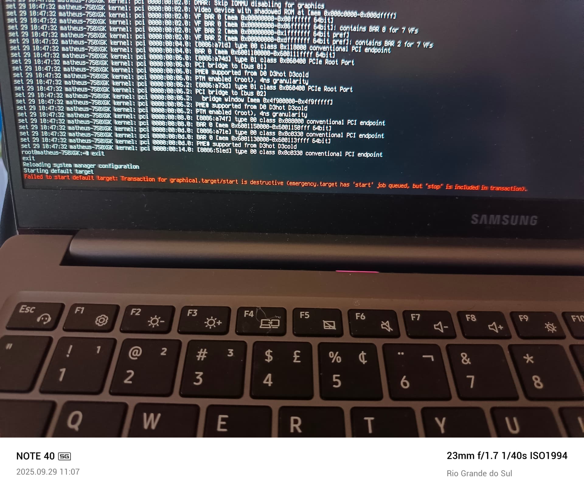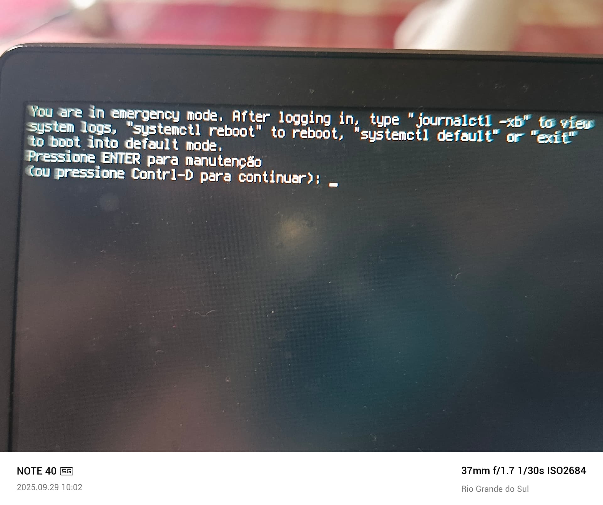 Vish, lembra da pasta onde colocou esses arquivos? Reinicie e rode o journalctl -xb